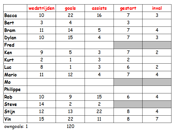 Statistieken Competitie 2025-2026